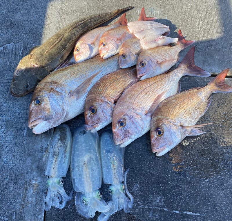 皆さんティップランや鯛ラバで楽しんでいただきましてアオリイカも真鯛も全員安打、真鯛は複数安打でした😁