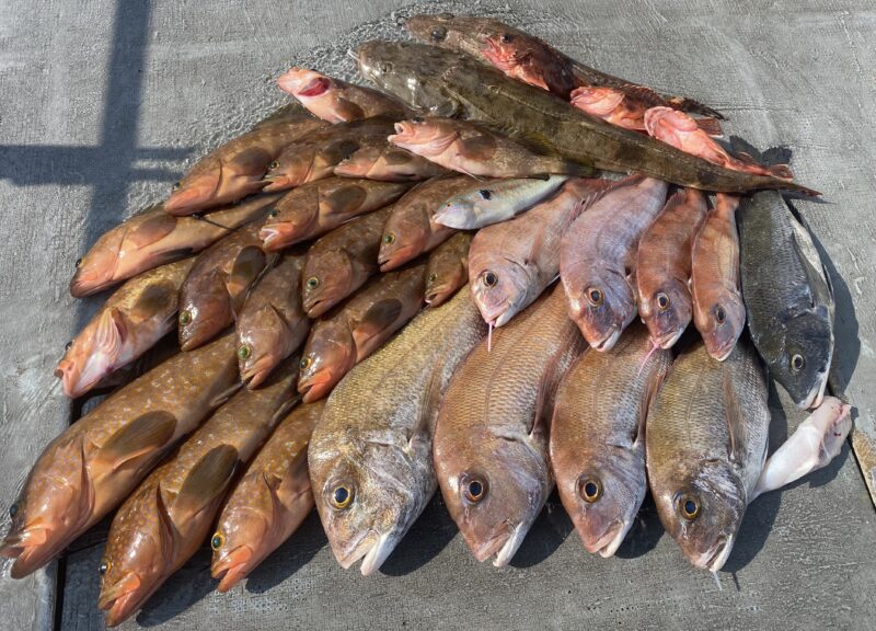 アッチコッチと探し回ってなんとか良型の真鯛やアコウを釣っていただくことができました☺️