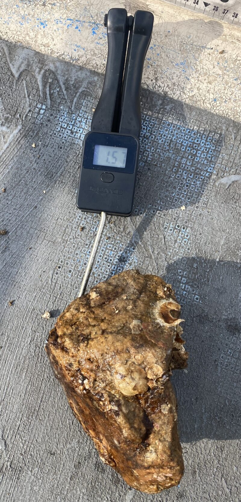 今日はアオリイカのキロUPはきてくませんでしたので最後の流しで上がってきたのを計ってみました😁