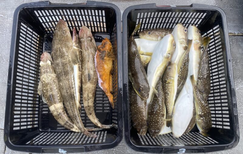 今日お持ち帰りしていただきましたお魚さんは、ショウサイフグ21尾とマゴチ・ワニゴチ・珍しいオニオコゼ(黄金色でした😁)です。またリベンジさせてください🙇♂️