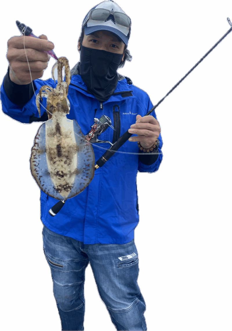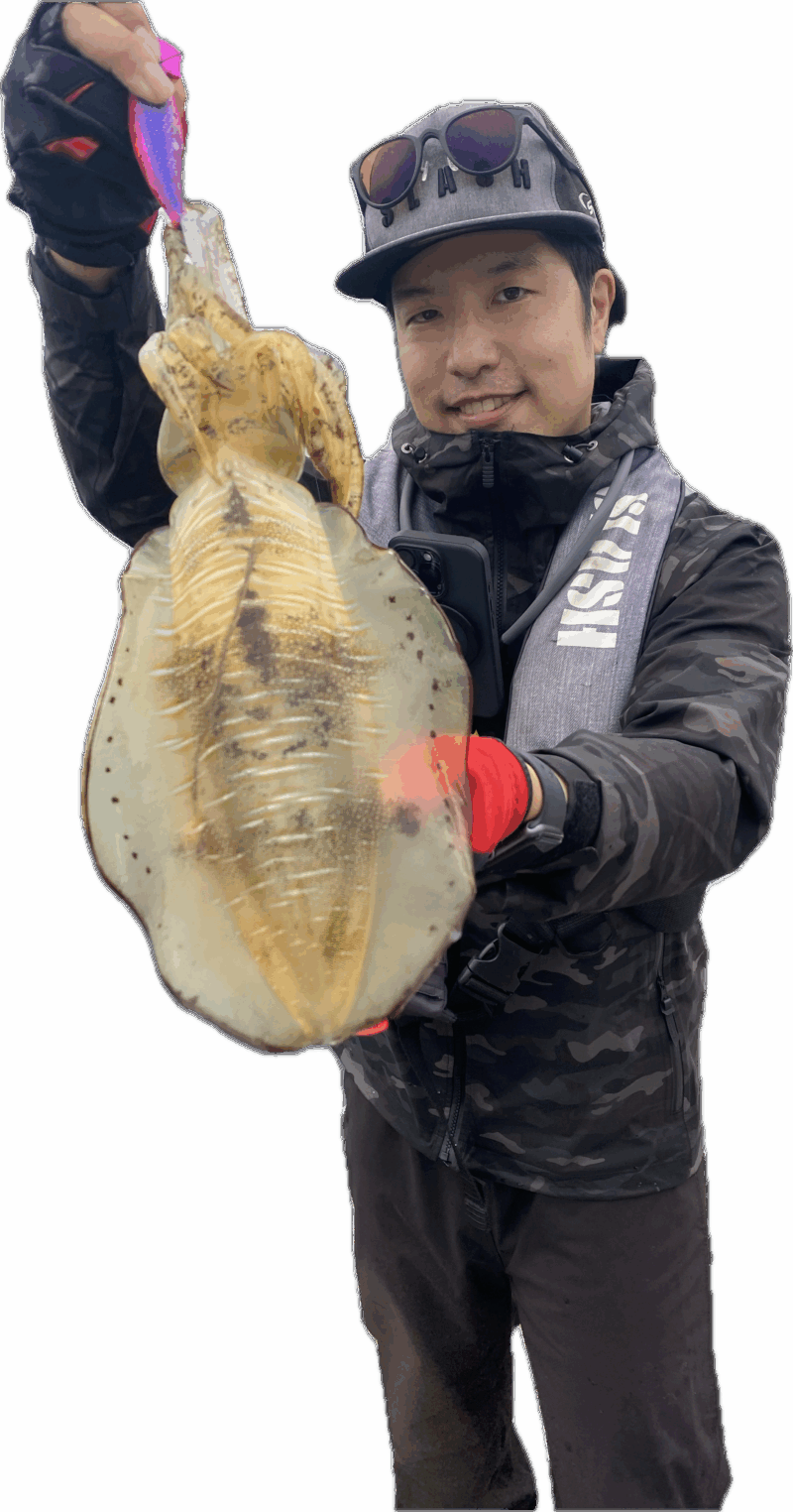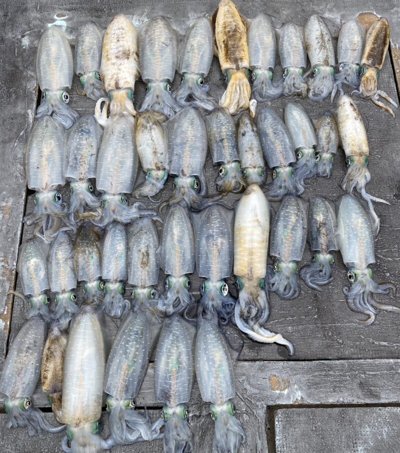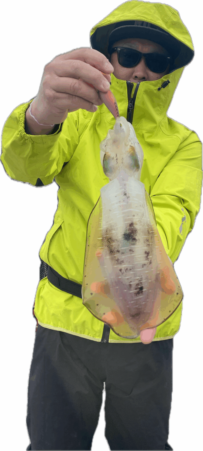 終始ラッシュはなく、たまにダブル・トリプルまであって全員安打で総数42杯(ちびっ子アオリイカ3杯含む)で1名様余裕の『つ抜け』でした😄