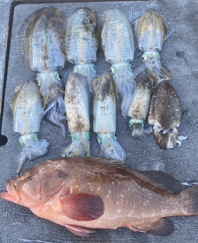 アコウが大きいのでアオリイカが小さく見えちゃいますね😅わかっていましたが‥‥